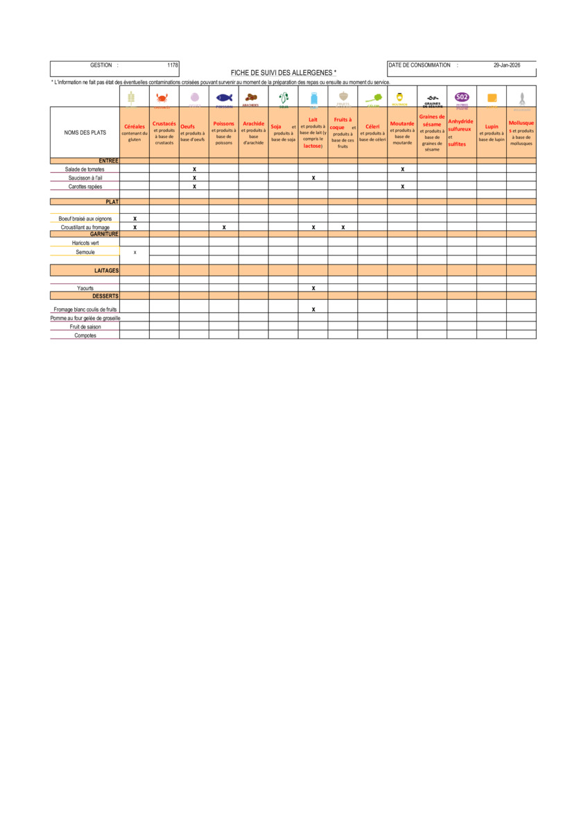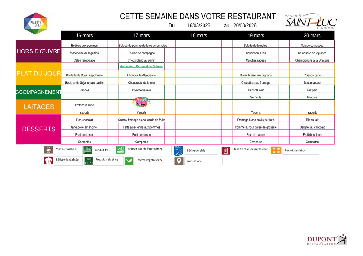 Les menus de la semaine