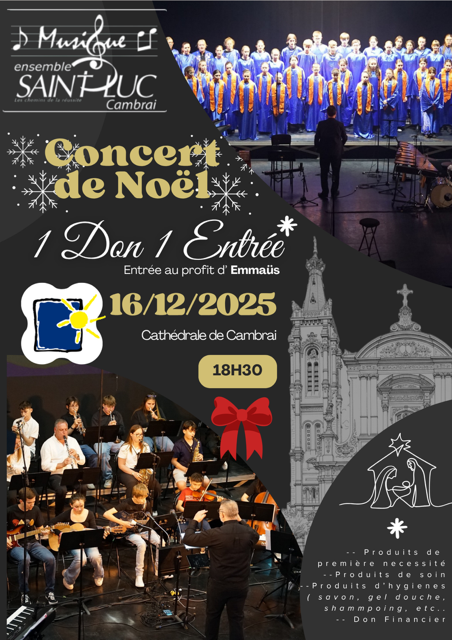 Le Pôle Musique Saint Luc donnera son concert de Noël ce mardi 16 décembre 2025 à 18h30 à la Cathédrale de Cambrai.