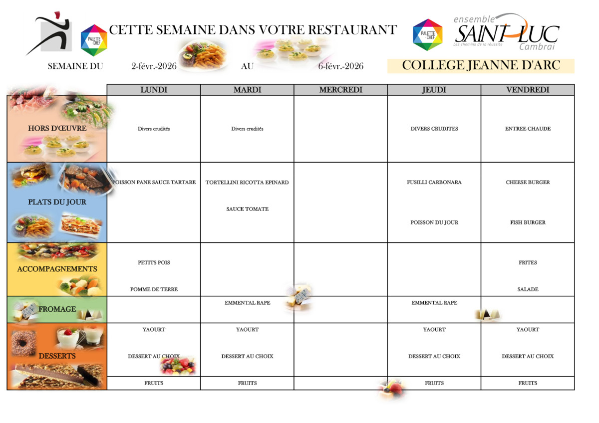 Les menus de la semaine