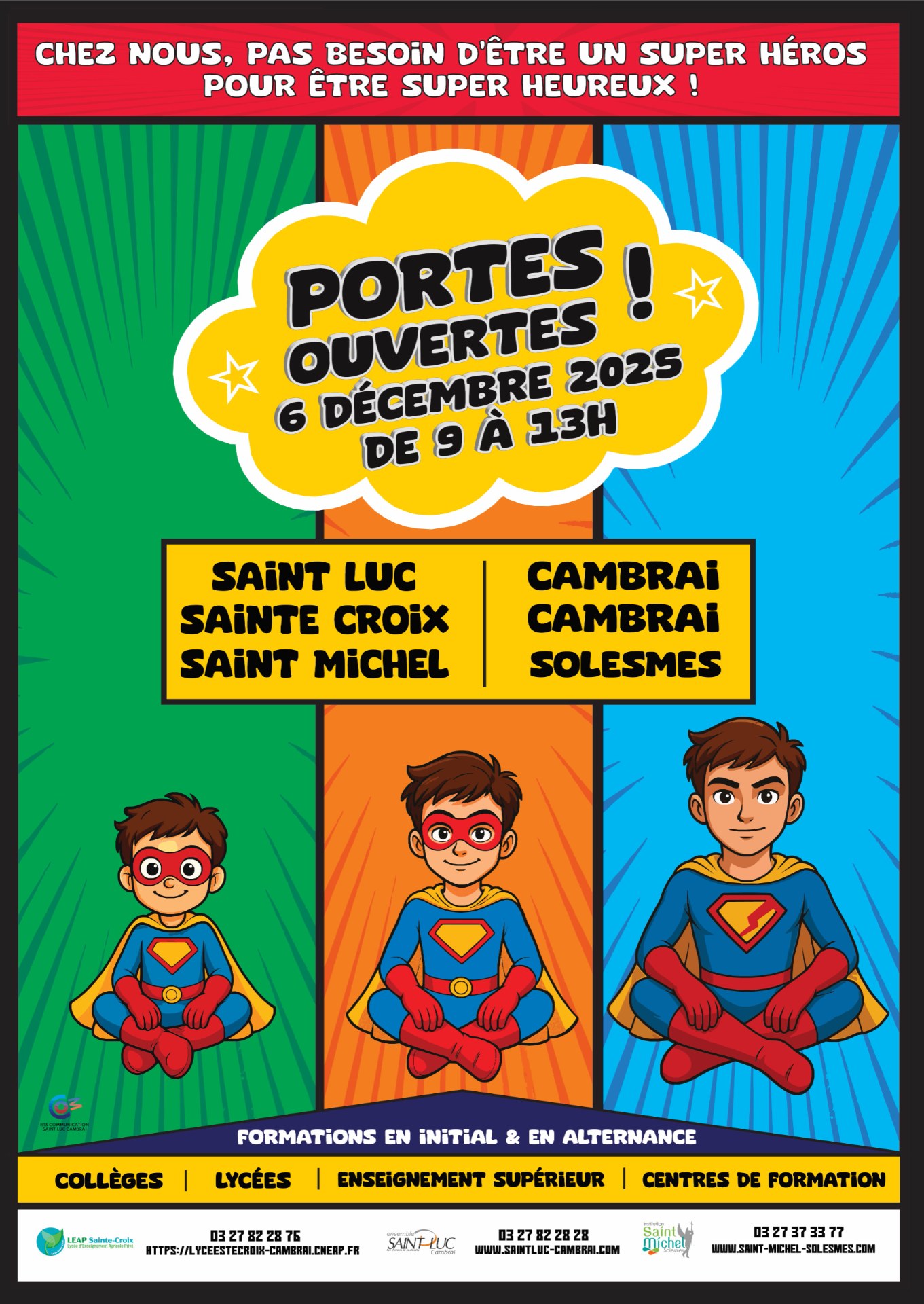 Toute l'équipe éducative du Collège Saint Luc - Jeanne d'Arc sera heureuse de vous accueillir lors de ses premières Portes Ouvertes 2025-2026 le samedi 6 décembre de 9h00 à 13h00.